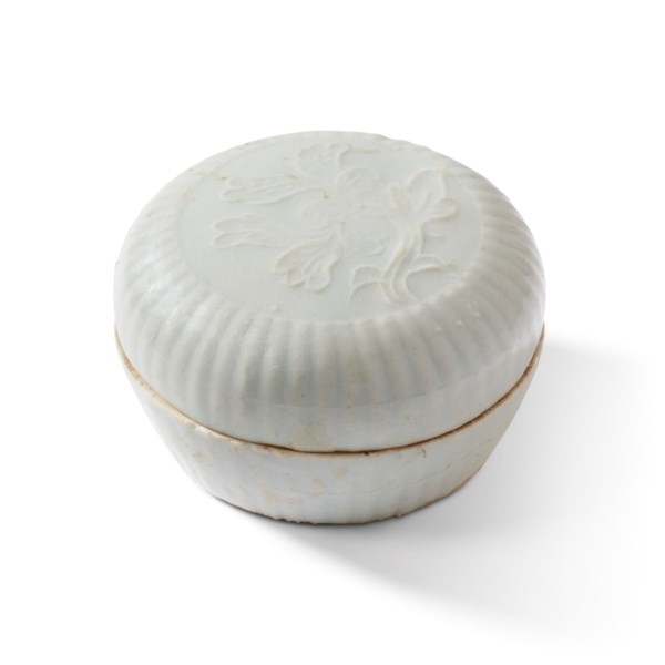 We have sought to record changes in the condition of this piece acquired after its initial manufacture. - There are some small chips to the rims, one of them associated with a small star-crack. - There is a small area of abrasion on the rim of the cover. - There is some fritting to the rims. There is general age-related surface wear, scratches and firing flaws as can be expected.