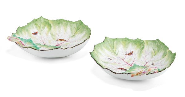 CIRCA 1775, BLUE SCEPTRE MARKS, INCISED K AND IMPRESSED 13A PAIR OF BERLIN PORCELAIN LEAF-SHAPED DISHESEstimate: USD 1,500 - 2,000