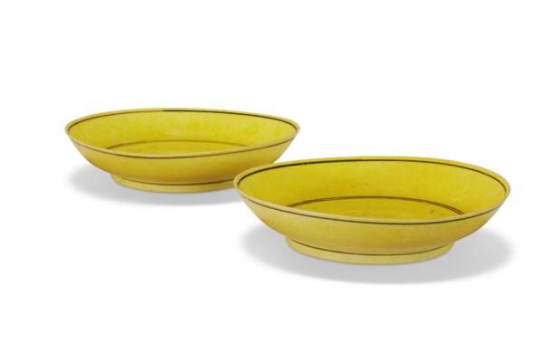 A PAIR OF CHINESE YELLOW AND BLACK ENAMEL INCISED 'DRAGON' DISHES