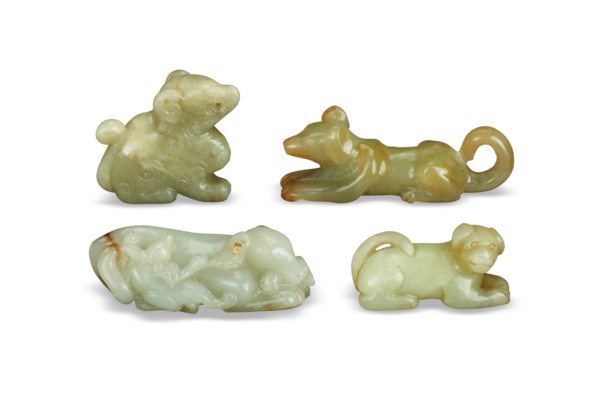 CHINA, LATE QING DYNASTY OR LATERFOUR JADE CARVINGS OF DOGSEstimate: USD 1,500 - 2,500