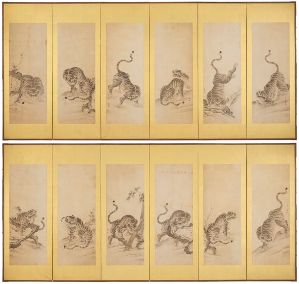 Kokuho Shimei was active during the late Edo period (19th century) as a Nagasaki school artist. His style is an interesting mixture of various cultures – he took the Chinese literati style nanga and Korean Joseon period folk art minhwa as foundations and mixed them with Western techniques. His art demonstrates the cultural exchanges between Japan and other countries. Kokuho Shimei's another example of tiger painting is in the collection of Fukuoka City Museum.