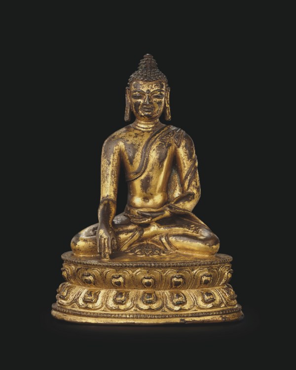 TIBET, 14TH-15TH CENTURYA GILT-BRONZE FIGURE OF BUDDHA SHAKYAMUNIEstimate: USD 5,000 - 7,000