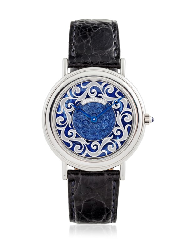 Movement: ticking at the time of cataloguing, service recommended. Case: with minor surface scratches but otherwise in very good overall condition Buckle: 18k white gold Alexis Garin buckle with minor surface wear Strap: black unsigned CROCODILE strap is slightly worn and bent Overall condition: very good