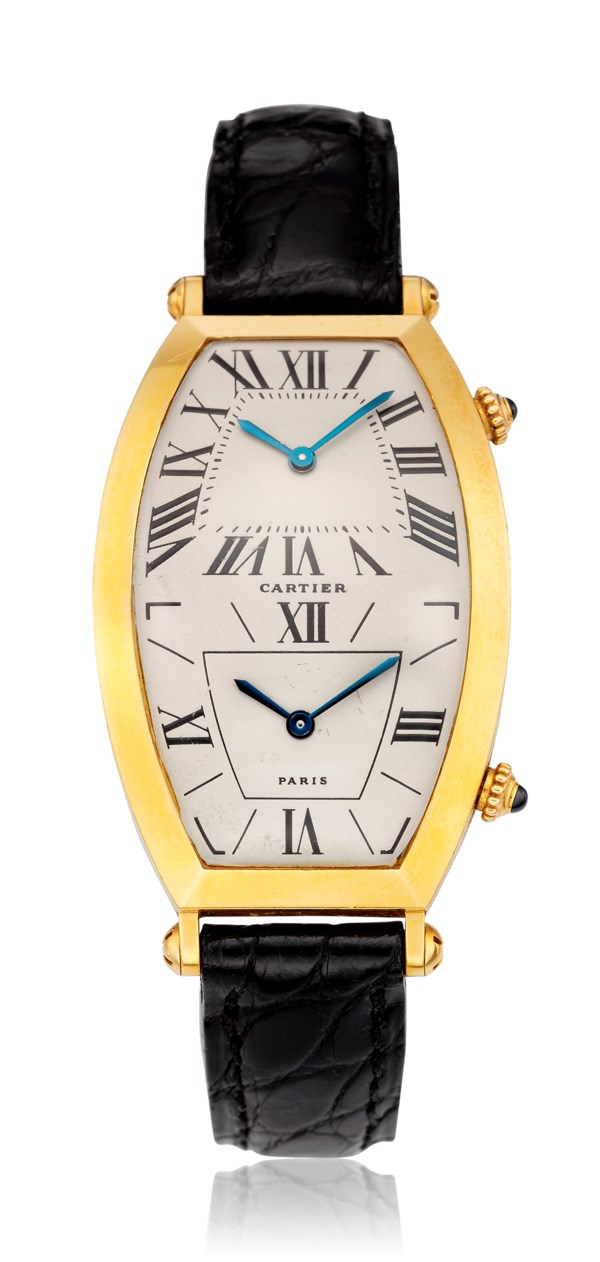 CARTIER, 18K DUAL-TIME TONNEAU, REF. 132-92Important information about this lot