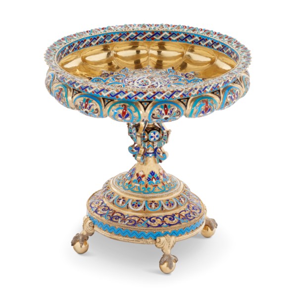 A CLOISONNÉ ENAMEL SILVER-GILT TAZZA