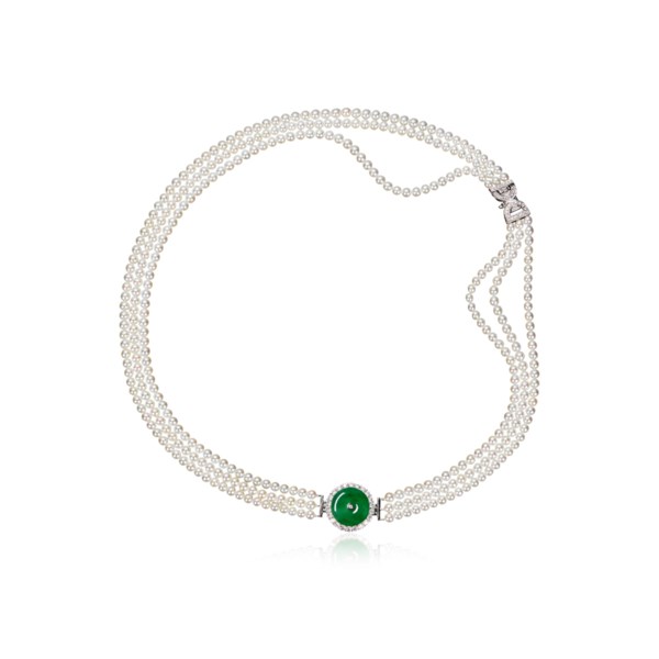 翡翠‘怀古’,约13.0 x 2.0毫米,珍珠及金