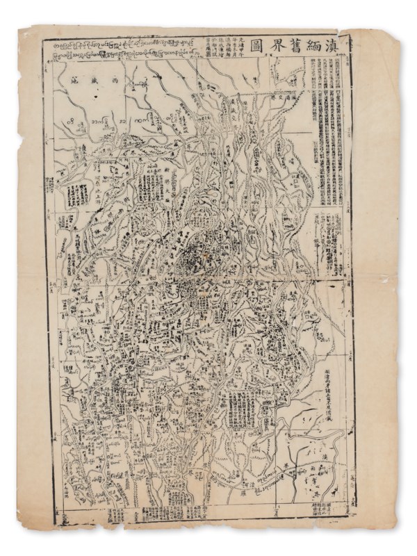 Important printed boundary map in memorial of the signing of the Yunan-Burma Treaty in 1894. The British East India Company started to actively annex territories to the east of India from the beginning of the 17th century, and became interested in the Burmese Ava Kingdom neighboring Bengal due to its commercial and strategic importance. The British invasion commenced with the First Anglo-Burmese War (1824-1826), and they finally annexed the whole territory, formally occupying Upper and Lower Burma, after the Third Anglo-Burmese War in 1886. Consequently, the border between Qing China and northern Burma needed to be redefined. Diplomat Xue Fucheng (1838-1894) was sent by the Qing court to settle the negotiation. In 1893, Xue Fucheng reported to Beijing his proposals of demarcation, which mainly revolved around the areas of Kachin Mountains. In the first month of the jiawu year of Emperor Guangxu’s reign (1894), Xue Fucheng signed the Yunnan-Burma Treaty with the British Foreign Minister, the Earl of Rosebery (Chan). The present lot, depicting the pre-1894 border between Yunnan and Burma, was produced in the year the treaty was signed. It is a record of the old border settled after the Sino-Burmese War (1765-1769) and a witness to a significant contemporary moment in history. The cartographer, Zhang Chenglian (1853-193) was Chinese Burmese born in Tengchong, Yunnan Province. He passed the Chinese provincial examination in 1879, and worked as a consultant for Xue Fucheng when the diplomat visited Yunnan. Zhang also worked for the Qing court to gather intelligence information on Burma, and was later appointed to the position of the magistrate of Maping County in Guangxi Province. References: Libby Lai-Pik Chan, East Meets West - Maritime Silk Routes in the 13th-18th Centuries (2016).