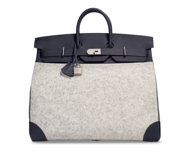 A LIMITED EDITION BLEU NUIT TOGO LEATHER & GRIS CLAIR WOOL TOUDOU HAC BIRKIN 50 WITH PALLADIUM HARDWARE