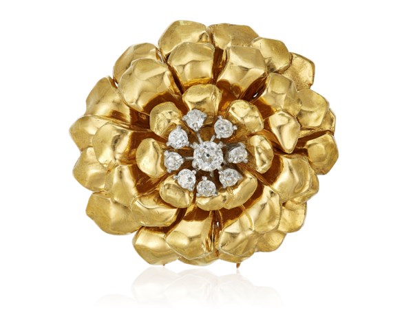 Diamonds bright and lively Gold with normal signs of wear including light scratching throughout THIS CARTIER DIAMOND FLOWER BROOCH IS OVERALL IN VERY GOOD CONDITION