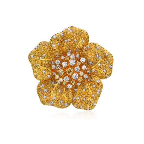 Gold shows minor signs of wear Diamonds are bright and lively Yellow diamonds are in good condition, SI clarity THIS COLOURED DIAMOND AND DIAMOND BROOCH IS IN OVERALL VERY GOOD CONDITION