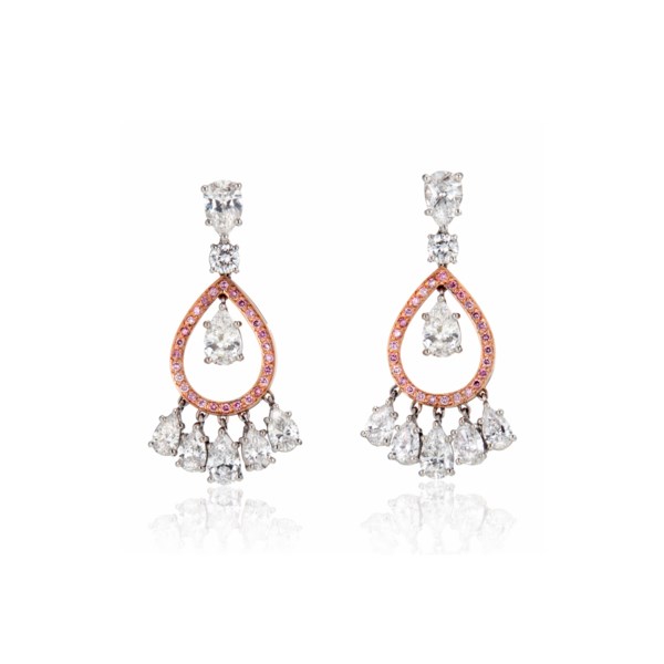 -Overall condition: good. Shows normal signs of wear including abrasions to the metal. Fitted with posts for pierced ears. -Diamonds: H to I color, VS clarity. -Pink diamonds: of various shades of pink, VS clarity.