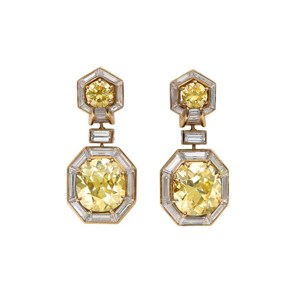 BOUCHERON PAIRE DE BOUCLES D’OREILLES DIAMANTS DE COULEUR ET DIAMANTSEstimate: EUR 250,000 - 450,000