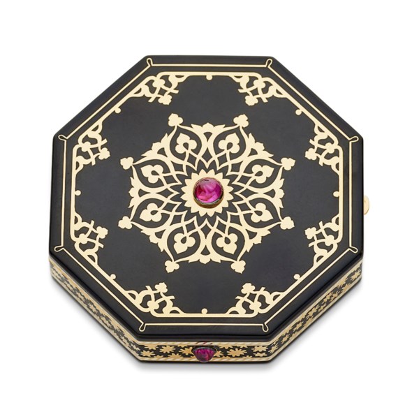-Overall condition: good. Shows normal signs of wear with minor abrasions throughout gold. Opening on a single compartment with a mirror. Fitted with a push lock. Accompanied by a pink powder puff.