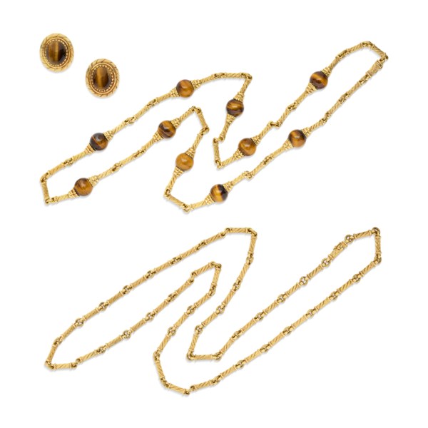ENSEMBLE SAUTOIRS ET BOUCLES D’OREILLES ŒIL DE TIGREEstimate: EUR 8,000 - 10,000