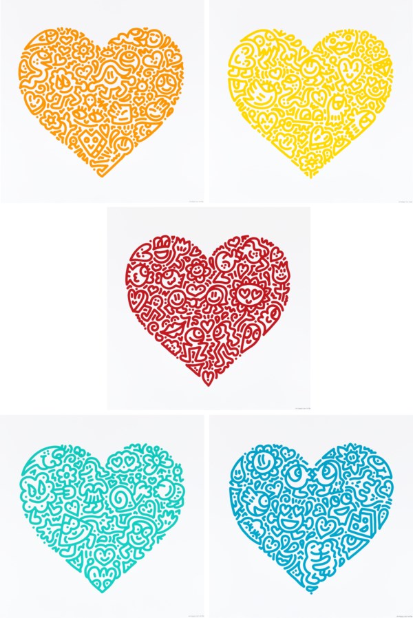 Pop Heart – Bird Joy, Unlocked Heart, Holding Hand, Bug Embrace, Lovers Cuddle (Set of Five Works)