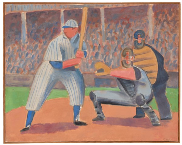 signed lower right; signed and dated in verso: 'Richard Bennet '09, Old Time Baseball.'