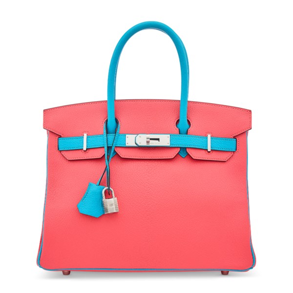 HERMÈS, 2015A SPECIAL ORDER ROSE LIPSTICK & BLEU AZTEC CHÈVRE LEATHER BIRKIN 30 WITH PALLADIUM HARDWAREEstimate: EUR 7,000 - 9,000