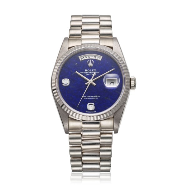 ROLEX, WHITE GOLD WITH LAPIS LAZULI DIAL DAY-DATE, REF. 18239估價: CHF 26,000 - 45,000